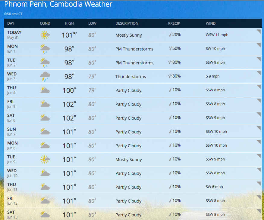 So here is the weather forecast for the next few days in Phnom Penh: