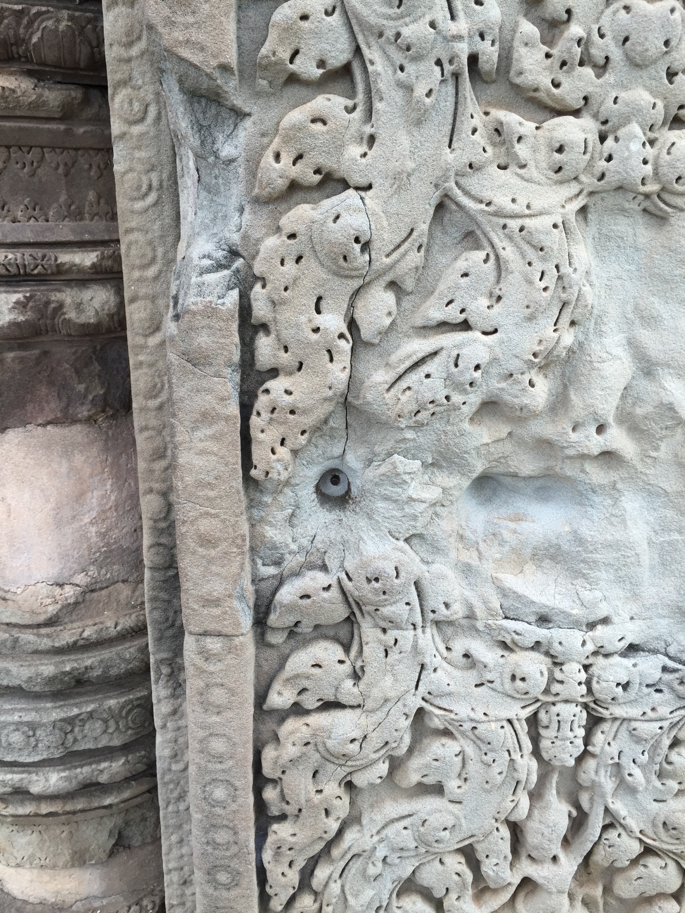 I took a tuk tuk from my hotel (which is insanely lavish and only $25 a night as it is off season here) into town (Siem Reap) to meet my tour guide from Grasshopper Tours. Sambo, my guide, and I left town at about 7:15 a.m. to begin our 30KM ride To and around the temples. I was the only person on the tour on this particular day so I got lots of information about the history of the temples and Cambodia in general. I forgot most of it. The clash between Hinduism and Buddhism was quite interesting to learn about.