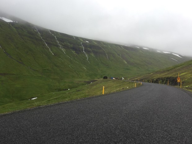But back to the crime here for a minute. This is what really struck me all day. I have seen virtually no liter – I saw ONE cigarette butt, one plastic bottle, and one tissue. That is it! Just walk three blocks tomorrow and see how much you find. Also – there are no visible police or police stations. I don’t feel like I am being watched or forced into acting the right way. The waterfall and cliff are wide open to the public. There are not gates and fences and opening and closing times. You just go and visit them. And since jet lag and lack of sunset have me up at weird hours, I was walking along the cliff at 8 p.m. I drove back through the mountains on crazy roads for three hours because it was so light out that I didn’t have to worry about the time at all. So the climate enables one to be out and about, but what really makes it possible is that people are reasonable here. Not one car ever honked at me today – if one wanted to pass, I slowed down and moved over. If I wanted to pass one, the other car slowed down and moved over.