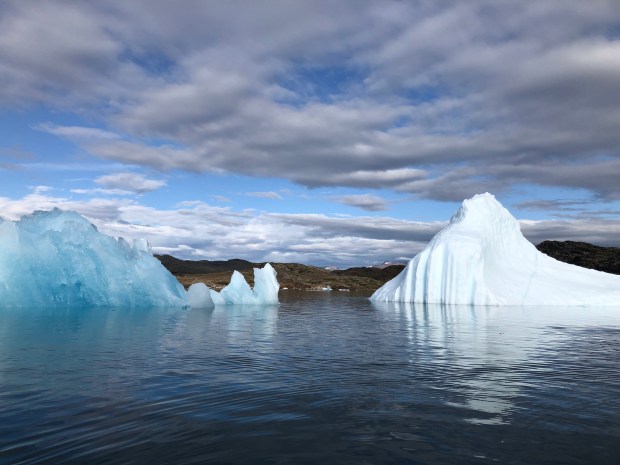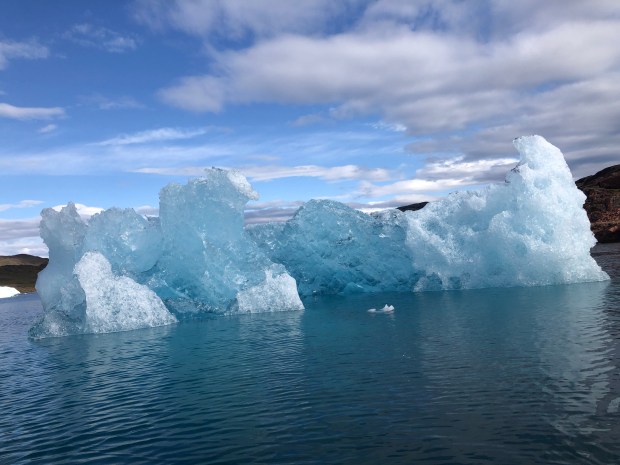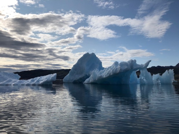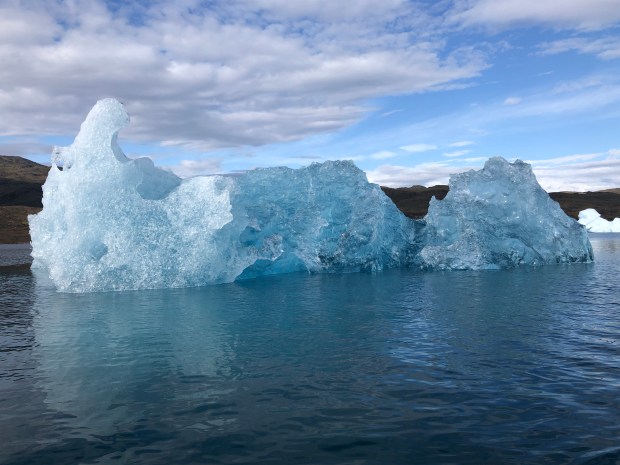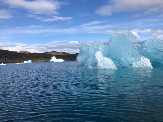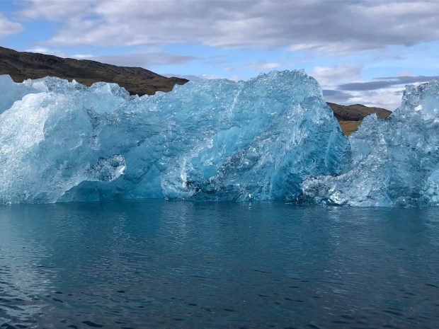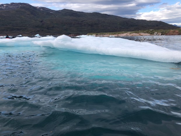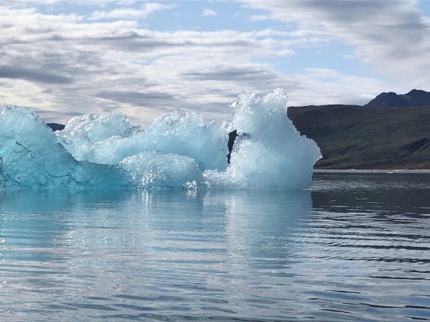 We kayaking for about three hours in the fjord. It was just so lovely, like kayaking through a sculpture garden made of ice.