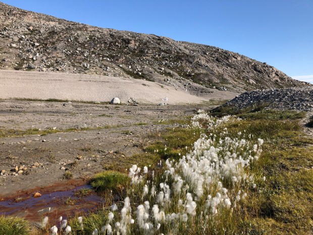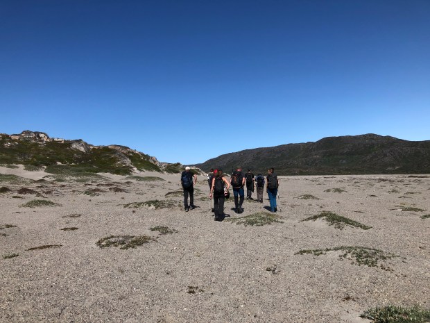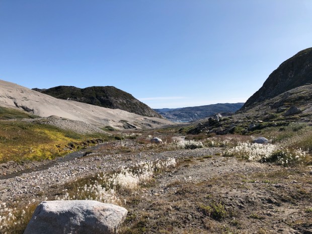 The beginning of the hike was nice enough. The terrain was pretty weird, sandy, and desert-like, which was unexpected. We reached Lake Tasersuatsiaq with relative ease, and I started to feel pretty confident that I would be okay for this hike.
