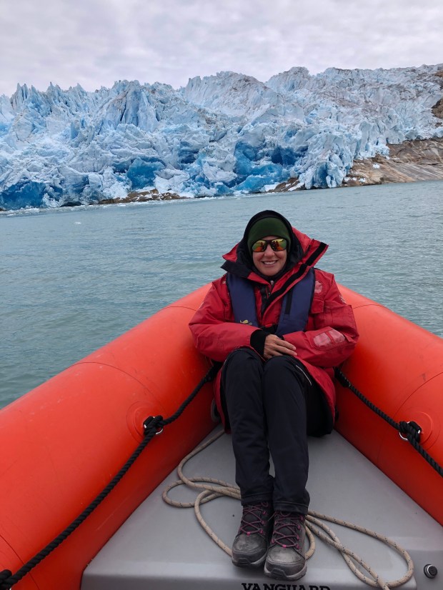 Following our pillaging of the Greenlandic supermarket, we made a fast getaway on our Zodiac boat with J.J.