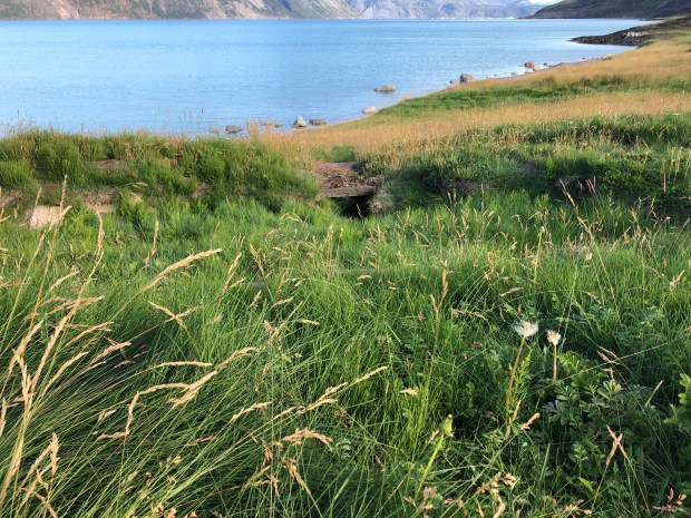 After some time in Narsarsuaq, we went to the wee harbor and boarded our first Zodiac boat for the fifteen minute journey across the fjord to Qassiarsuk. Once there, we organized ourselves into the hostel ( which was really the owner, Ramon’s house but just for one night) and then explored some ruins with Jara (our other guide) and Alessandro.